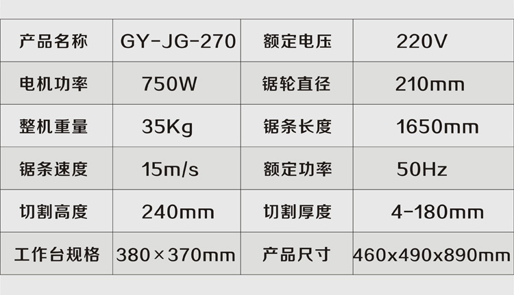 • 規格型號 GY-JG-270