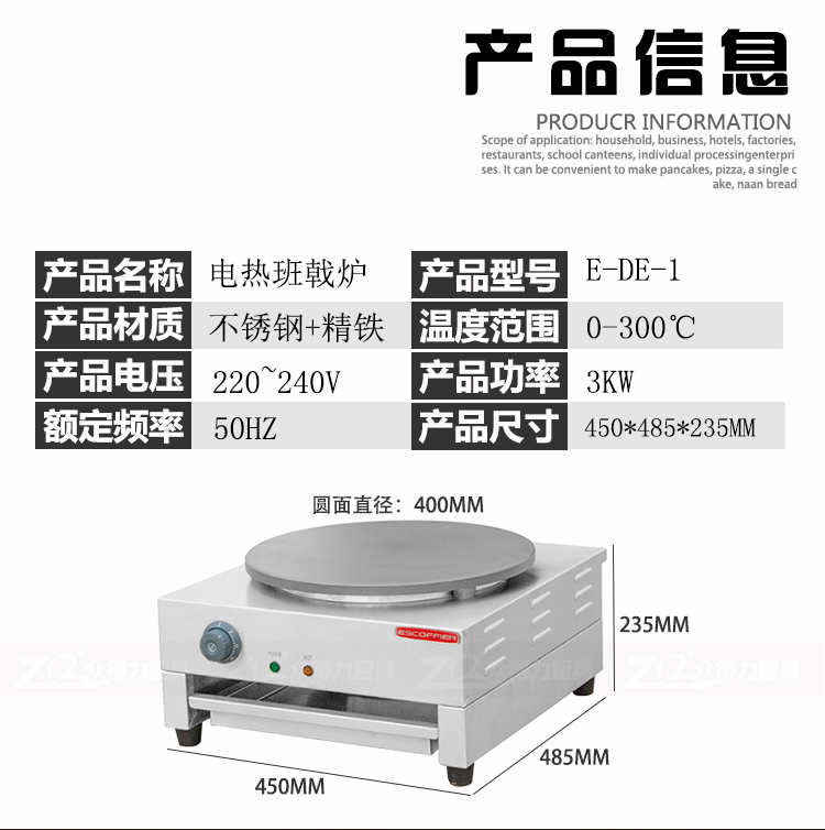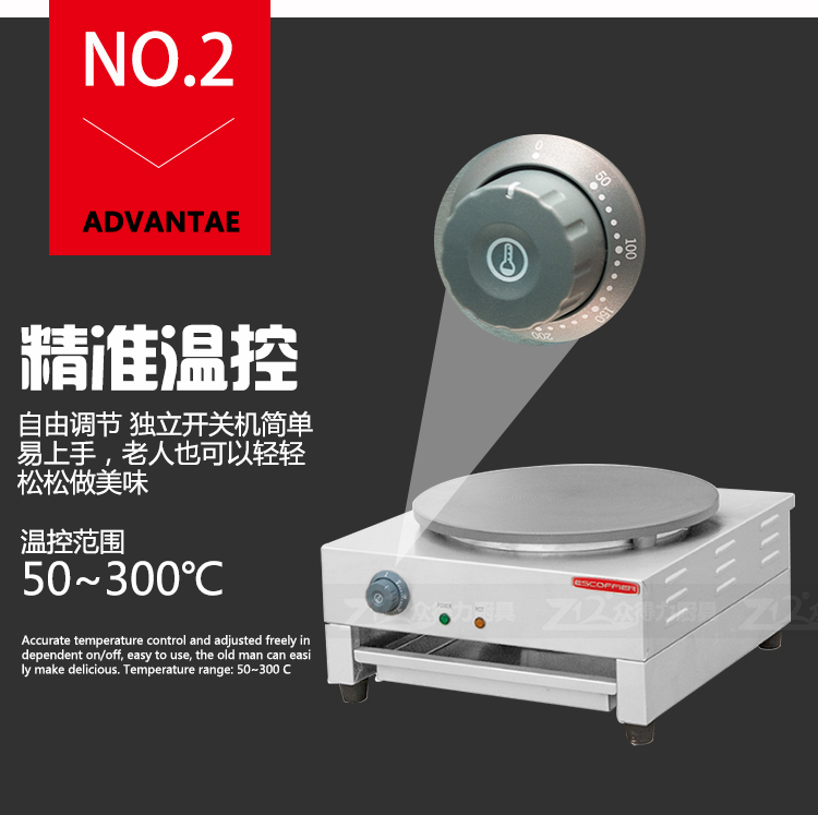 班戟爐是一種恒溫加熱,速熱快的美食設備,整機外殼采用優質不銹鋼材質,板材厚,加熱盤采用生鐵鍛造,表面光滑,食品級不粘涂層拋光處理,可加工制作各種煎餅。