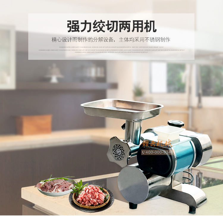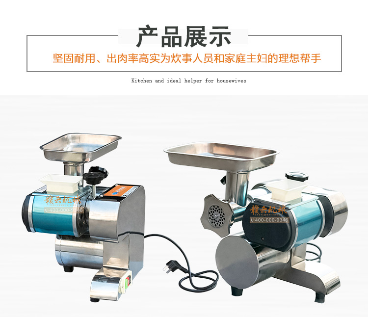 贛云牌12型臺式電動強力絞切機,絞肉切肉灌腸一體機,采用1.0kw大功率純銅電機作為動力,絞肉切肉一體,整機設計平衡性能良好,絞肉切肉速度快,絞龍采用不銹鋼材質。價格是2080元 (不含稅)