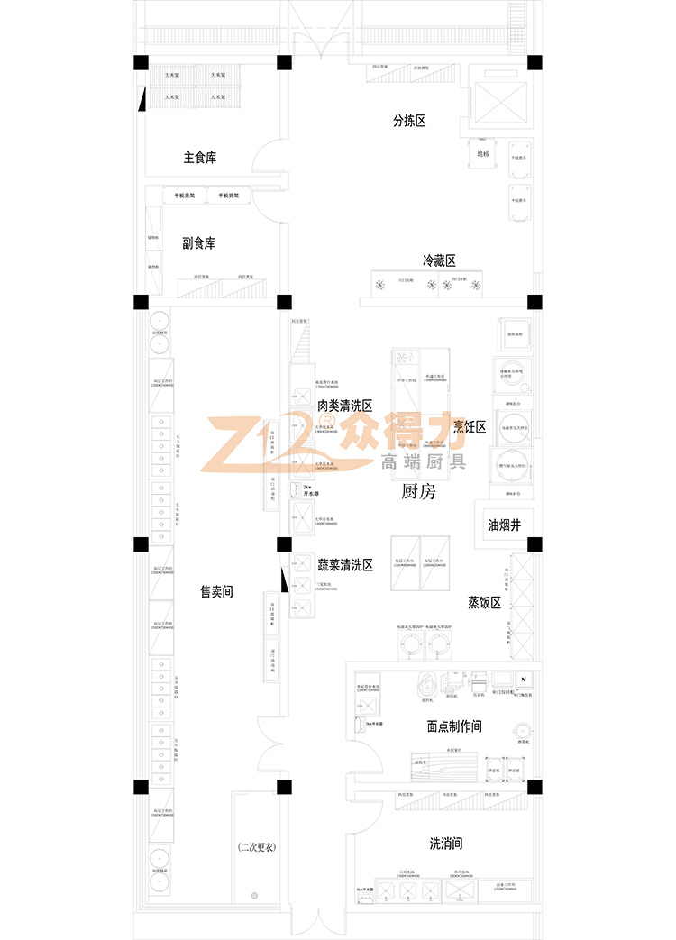 江西眾得力廚具有限公司設計的興國學校廚房工程設計規(guī)劃案例